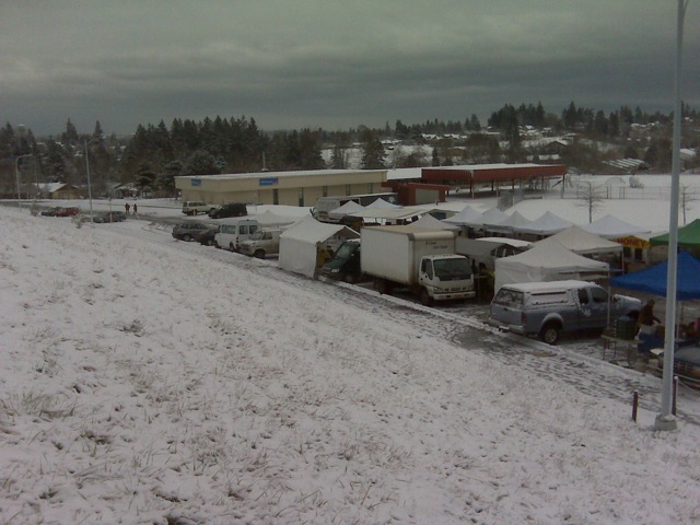 We weren't expecting to have a snowy market but we did. Turned out to be a good day anyway. Nearly every vendor came and we had a nice crowd. Here's a photo from about 9:30am.