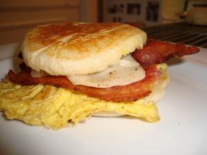 My mom loves English muffins. She has eaten one everyday for breakfast (toasted, with a little homemade strawberry jelly) for as long as I can remember. When you think about it, English muffins are the perfect breakfast bread. They are not as bulky or dense as bagels and are infinitely more interesting (chewy, yet still light and fluffy) than white bread. Breakfast sandwiches across the country use these little muffins as bookends to delicious fillings, most notably eggs, hot melted cheese and crispy bacon. The Summer of Bread begins with breakfast. To read more, visit http://summerofbread.com/2010/06/breakfast-of-champions/.