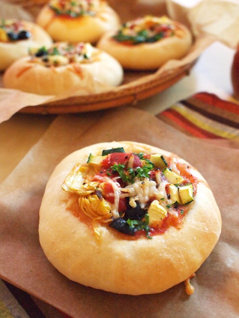 First of all, I don’t know what to call this bread. Focaccia? Pizza? Tomato sauce, cheese and vegggies on the Focaccia dough. So…Focazza?? Any vegetable can be used for this. I put zucchini, artichoke hearts and olives. Can’t forget to sprinkle some pink salt and black pepper at the end. All my favorites. Since it has all my favorite toppings, it’s hard to decide where to take the first bite…