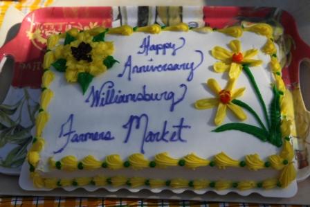 Williamsburg Farmers Market 402 W Duke of Gloucester St. in Merchants Square Saturday, June 30, 2012 - Tenth Anniversary Celebration 8:00 a.m. – 12:00 p.m. The Williamsburg Farmers Market's Tenth Anniversary Celebration will open with a bell ringing ceremony, an unveiling of a new market poster, and free cake at 8 a.m. Students from J Blaine Blayton will present “How Does Your Garden Grow” at 10 am. Master Gardeners will feature water stewardship. Ron Fetner will play from 9:00 am – 11:00 am. Renny Parziale will run the annual chefs cook-off at the Chefs Tent at 9:30 am and 10:30 am. Over 40 vendors will be selling fresh fruits and vegetables, meat, cheeses, honey, pasta, plants, soups, and baked goods. 757-259-3768, www.williamsburgfarmersmarket.com